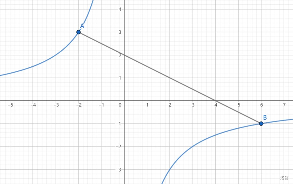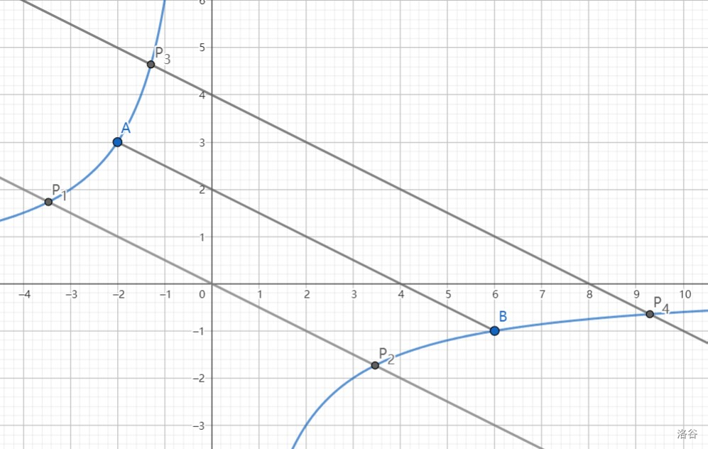 如图,y=−x6 上有两点 A(−2,3),B(6,−1),若点 P 在 y=−x6 上,且 S△APB=8,求点 P 坐标。