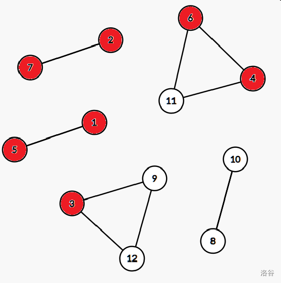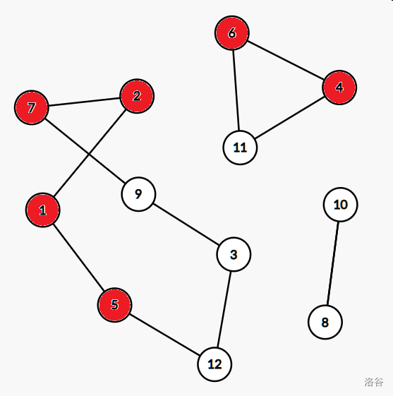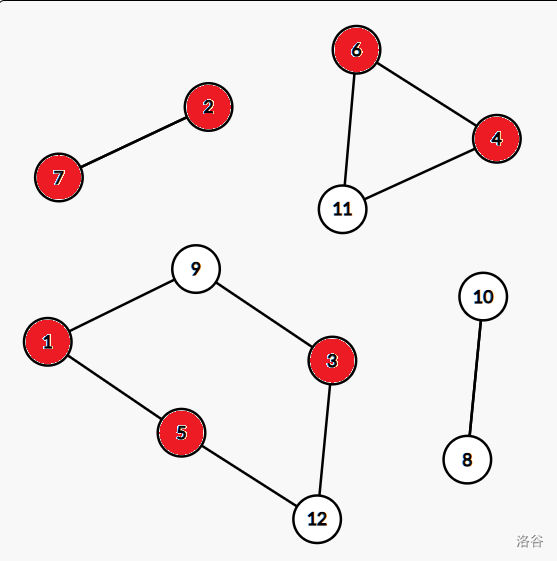 一个图在点集 S 的诱导子图的定义为:点集为 S,边集为所有两端的点都在 S 中的边的子图。